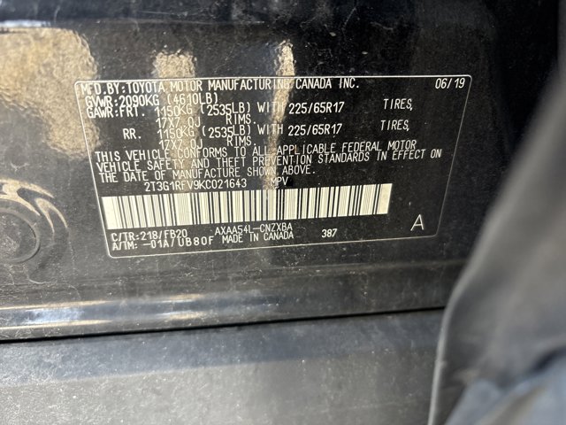 - VIN : 2T3G1RFV9KC021643